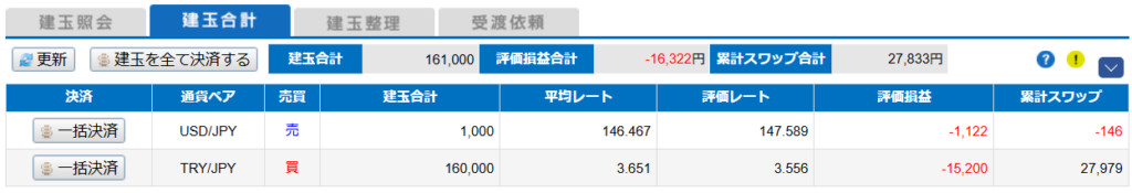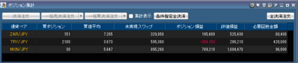 - 外貨exの追加建玉の運用と同様、新規/決済ともに2.5円値幅でスワップポイント&リピート狙いで運用