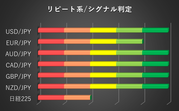 - リピート系:日経225のシグナル判定は評価2、それ以外は評価4以上(要対策期)