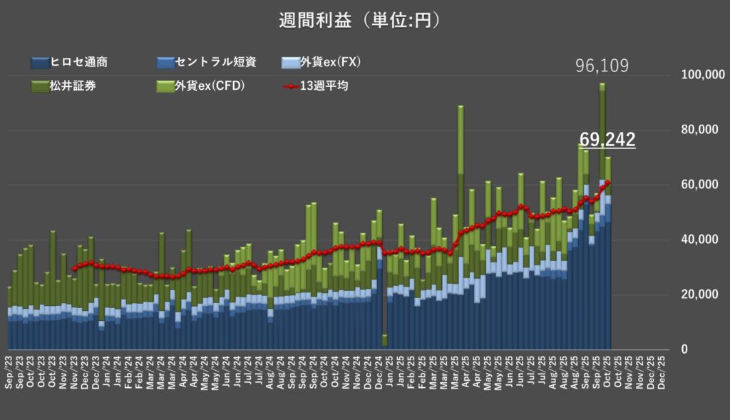 今回は、25年10月13日~25年10月17日のFX/CFD運用実績について報告します。