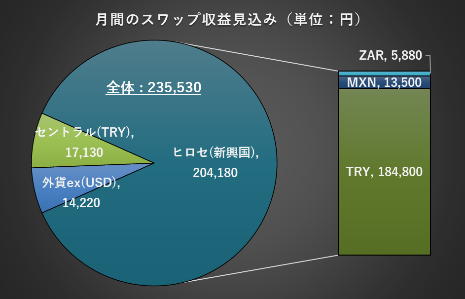 現時点での、月間スワップ収益の見込みは約23.5万円となります。