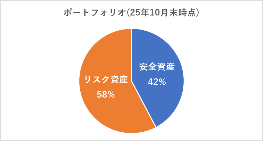 - ポートフォリオ:リスク資産:安全資産=58%:42%