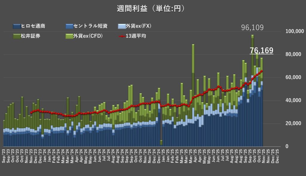 というわけで、今回は『25年11月3日~25年11月7日のFX/CFD運用実績』について報告します。