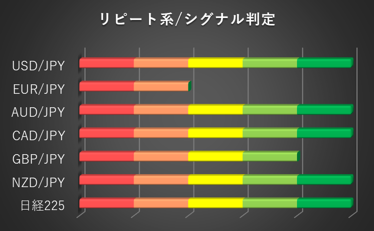 このため、リピート系の各取引において為替レート/日経225の株価の状態を5段階評価(シグナル判定)で確認します。