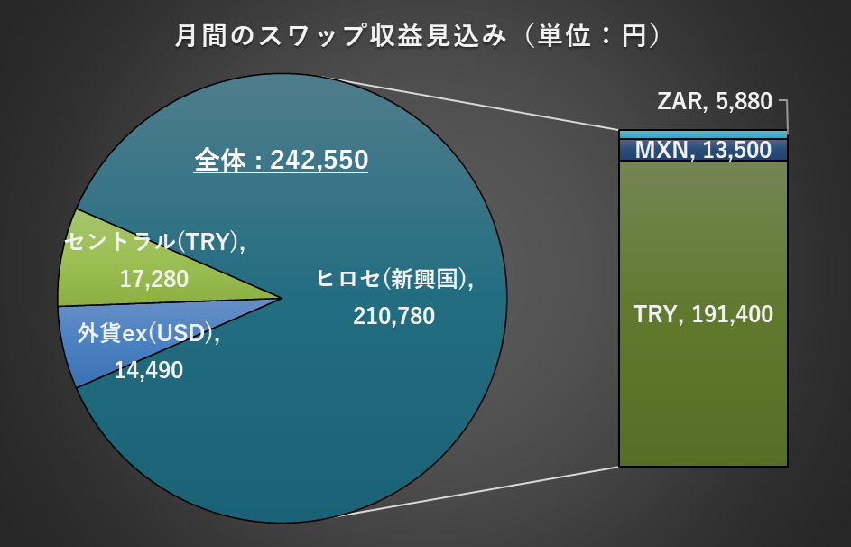 現時点での、月間スワップ収益の見込みは約24.2万円となります。