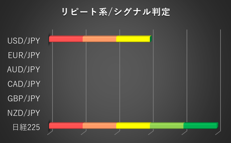 このため、リピート系の各取引において為替レート/日経225の株価の状態を5段階評価(シグナル判定)で確認します。