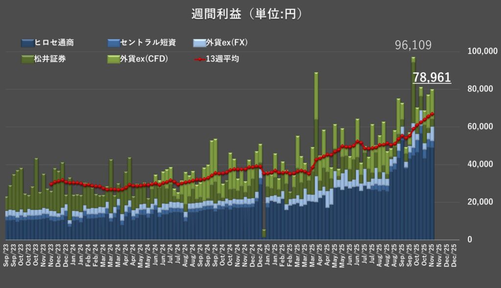 というわけで、今回は『25年11月10日~25年11月14日のFX/CFD運用実績』について報告します。