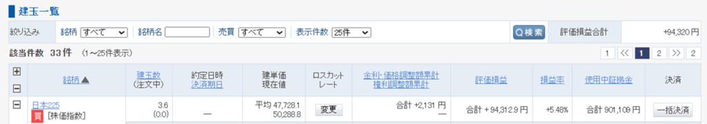 | 25年12月 | 外貨ex(CFD) | 日本225 | 2.8枚 | 33,354円 |