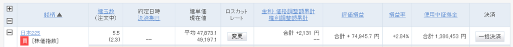 決済した建玉および追加分、計4.7枚を買い直しました(カッコ内は実施前との差)。