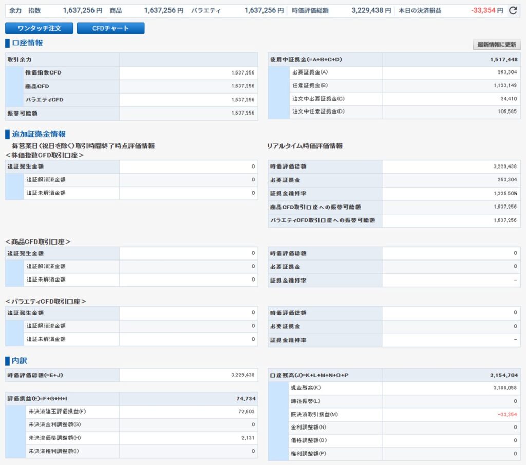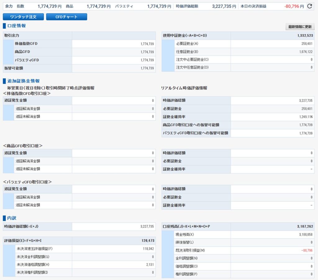 損出し決済直後の状態です(カッコ内は実施前との差)。