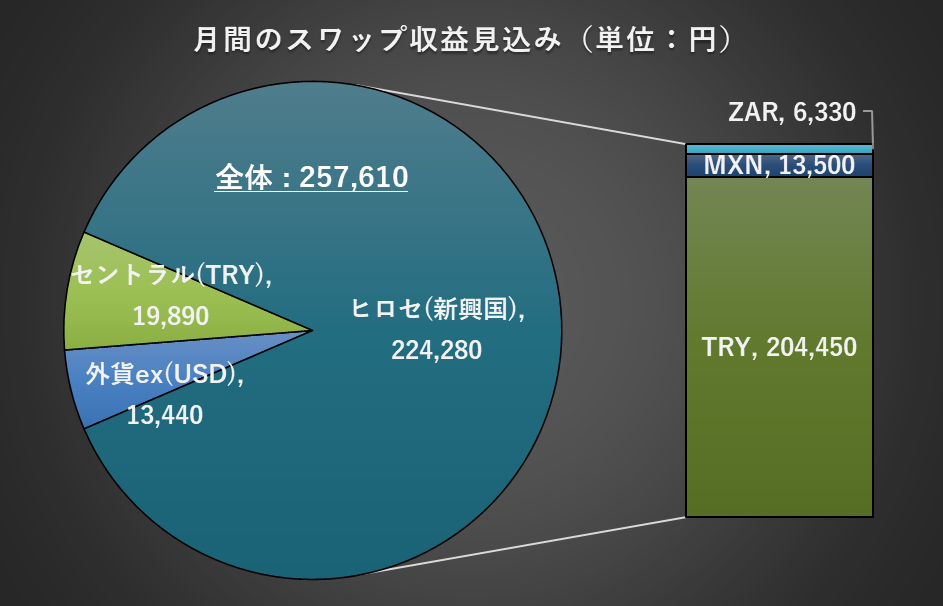 現時点での、月間スワップ収益の見込みは約25.7万円となります。