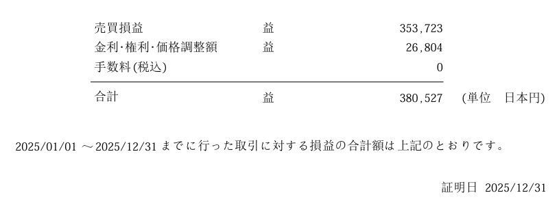 | 25年12月 | 外貨ex(CFD) | 日本225 | 2.8枚 | 33,354円 |