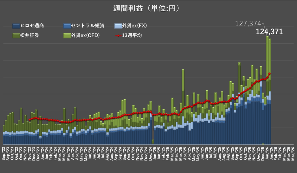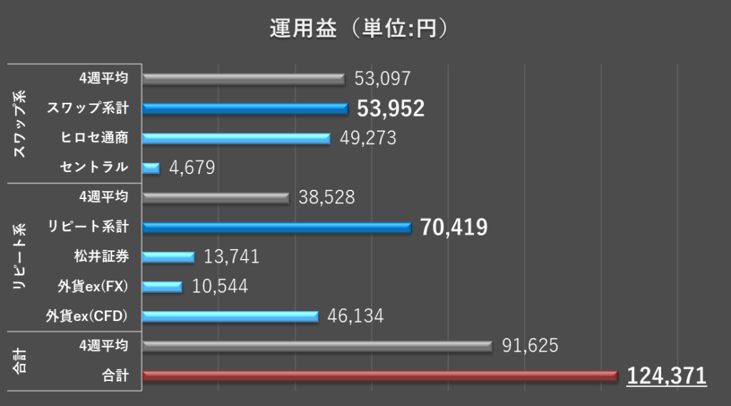 今週の合計運用益も、10万円の大台を突破し124,371円となりました。