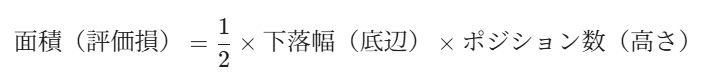 通常の1ポジションであれば、下落が2倍になれば損失も2倍(長方形の面積)ですが、リピート系は「価格が下がるほどポジション数も増える」ため、損失の推移は「直角三角形の面積」となります。
